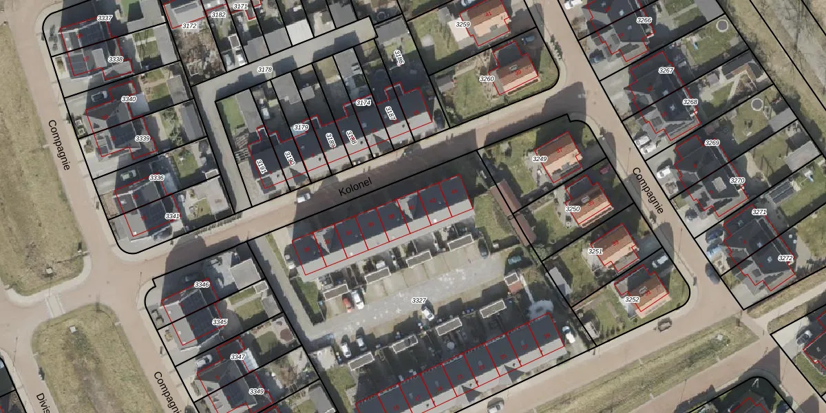 Het perceel waarop Kolonel 40 staat heeft een oppervlakte van 3472 m². Dit is een zeer groot perceel. De perceeloppervlakte wordt geregistreerd door het Kadaster. Gedetailleerde informatie over de maten van dit perceel kunt u vinden in het rapport Kadastrale kaart met maatvoering van Kolonel 40.