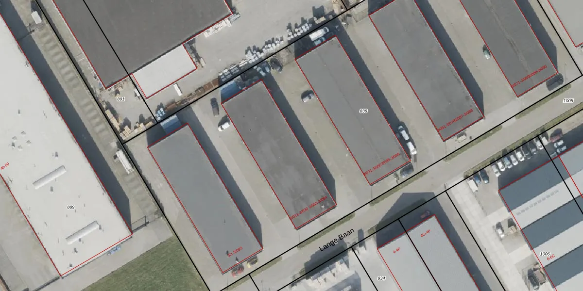 Het perceel waarop Lange Baan 3-025 staat heeft een oppervlakte van 8940 m². Dit is een zeer groot perceel. De perceeloppervlakte wordt geregistreerd door het Kadaster. Gedetailleerde informatie over de maten van dit perceel kunt u vinden in het rapport Kadastrale kaart met maatvoering van Lange Baan 3-025.