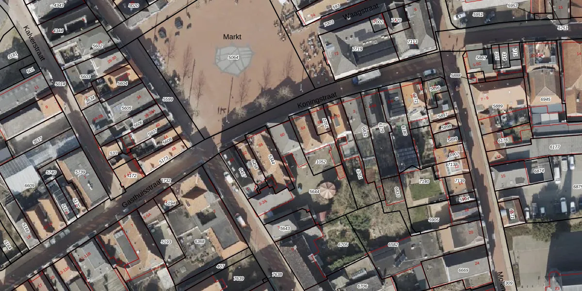 Het perceel waarop Markt 60 staat heeft een oppervlakte van 624 m². Dit is een groot perceel. De perceeloppervlakte wordt geregistreerd door het Kadaster. Gedetailleerde informatie over de maten van dit perceel kunt u vinden in het rapport Kadastrale kaart met maatvoering van Markt 60.