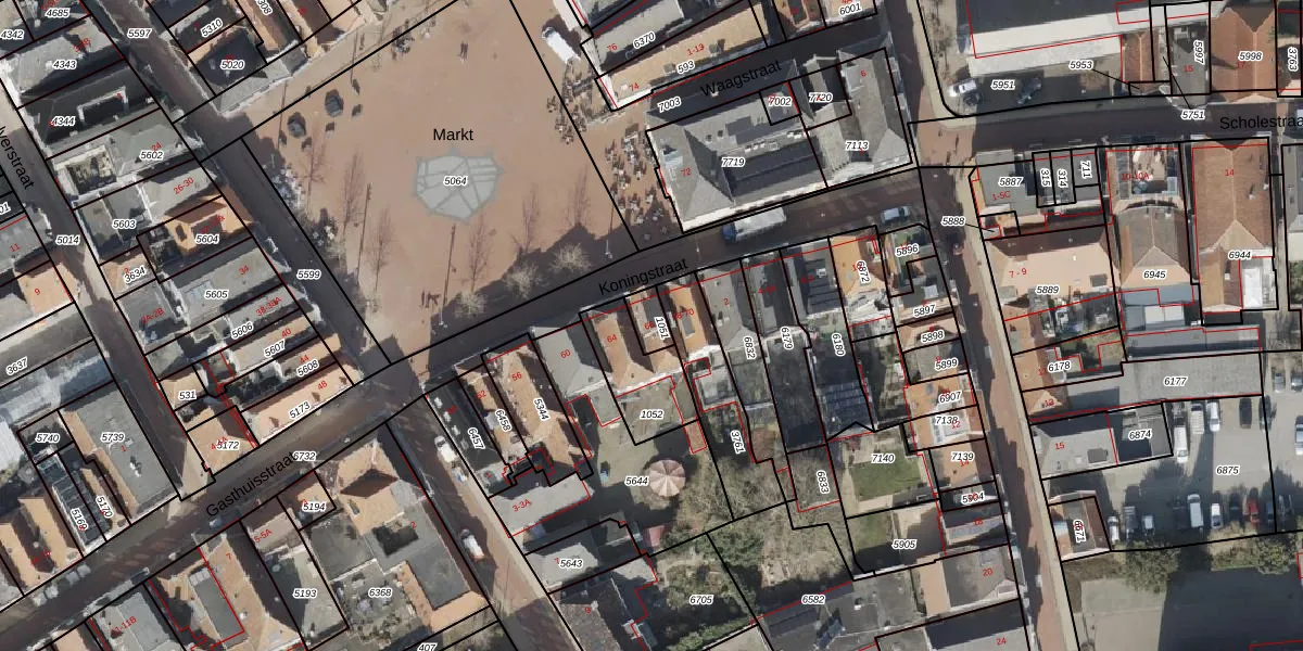 Het perceel waarop Markt 66 staat heeft een oppervlakte van 50 m². Dit is een klein perceel. De perceeloppervlakte wordt geregistreerd door het Kadaster. Gedetailleerde informatie over de maten van dit perceel kunt u vinden in het rapport Kadastrale kaart met maatvoering van Markt 66.
