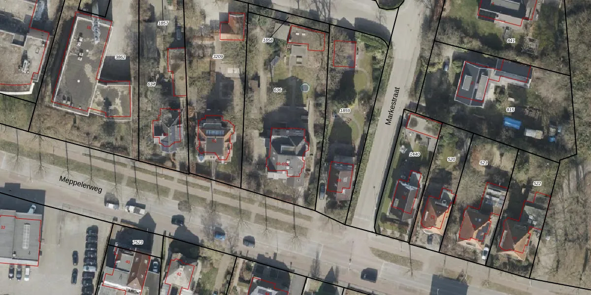 Het perceel waarop Meppelerweg 65-G staat heeft een oppervlakte van 1635 m². Dit is een zeer groot perceel. De perceeloppervlakte wordt geregistreerd door het Kadaster. Gedetailleerde informatie over de maten van dit perceel kunt u vinden in het rapport Kadastrale kaart met maatvoering van Meppelerweg 65-G.