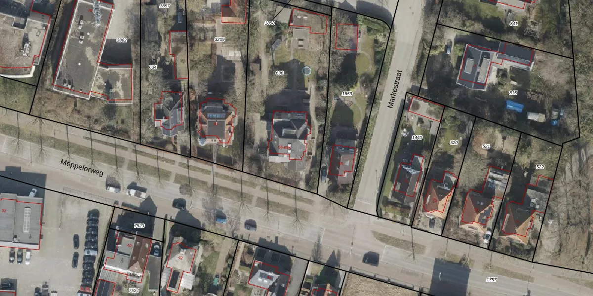 Het perceel waarop Meppelerweg 65-K staat heeft een oppervlakte van 1635 m². Dit is een zeer groot perceel. De perceeloppervlakte wordt geregistreerd door het Kadaster. Gedetailleerde informatie over de maten van dit perceel kunt u vinden in het rapport Kadastrale kaart met maatvoering van Meppelerweg 65-K.