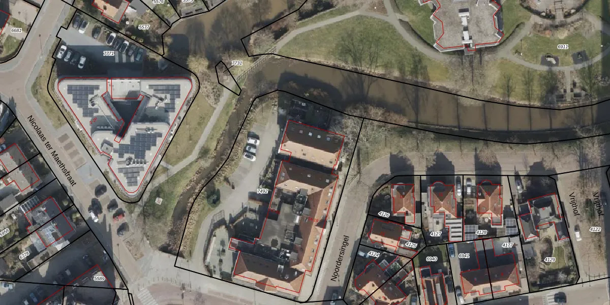 Het perceel waarop Noordersingel 19 staat heeft een oppervlakte van 2664 m². Dit is een zeer groot perceel. De perceeloppervlakte wordt geregistreerd door het Kadaster. Gedetailleerde informatie over de maten van dit perceel kunt u vinden in het rapport Kadastrale kaart met maatvoering van Noordersingel 19.