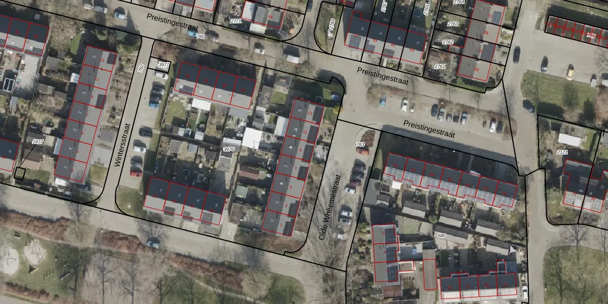 Olde Wheemestraat 9 is gelegen op kadastraal perceel SWK01B3976. Deze kadastrale aanduiding is uniek en wordt gebruikt door het Kadaster om eigendomsrechten en andere zakelijke rechten vast te leggen. Het perceel maakt onderdeel uit van de kadastrale gemeente Steenwijk.