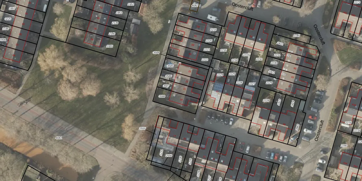 Oostercluft 21 is gelegen op kadastraal perceel SWK01B3587. Deze kadastrale aanduiding is uniek en wordt gebruikt door het Kadaster om eigendomsrechten en andere zakelijke rechten vast te leggen. Het perceel maakt onderdeel uit van de kadastrale gemeente Steenwijk.