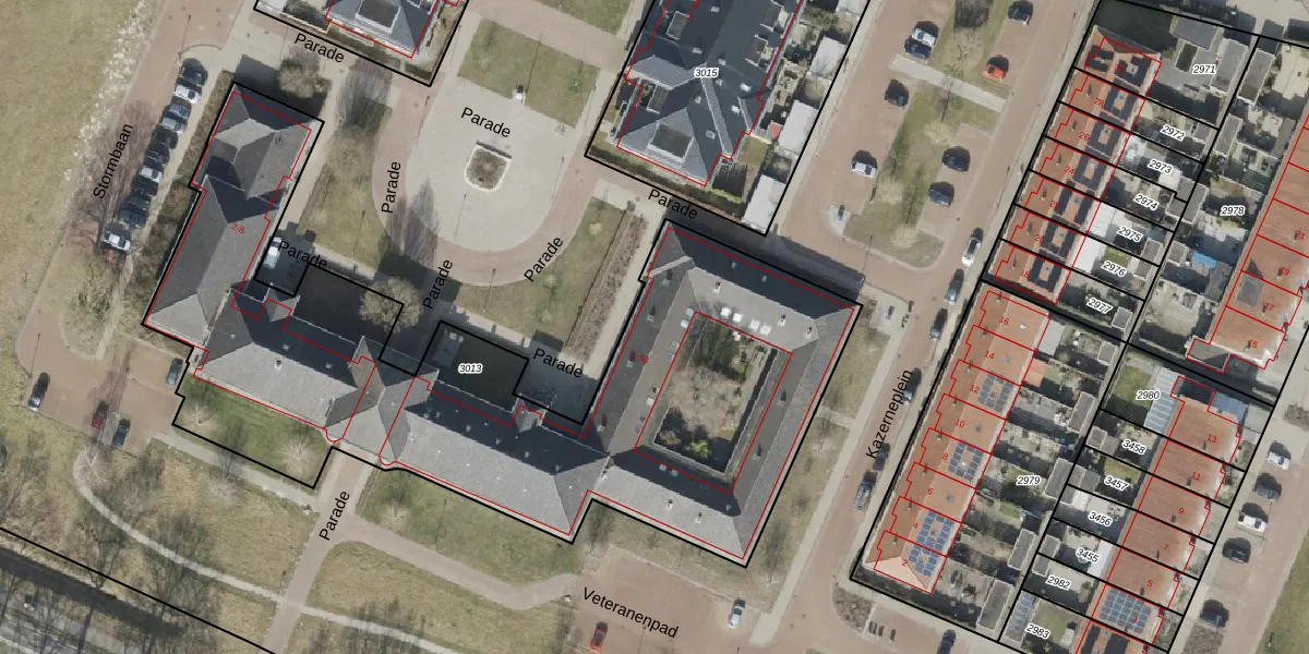 Het perceel waarop Parade 21 staat heeft een oppervlakte van 3320 m². Dit is een zeer groot perceel. De perceeloppervlakte wordt geregistreerd door het Kadaster. Gedetailleerde informatie over de maten van dit perceel kunt u vinden in het rapport Kadastrale kaart met maatvoering van Parade 21.