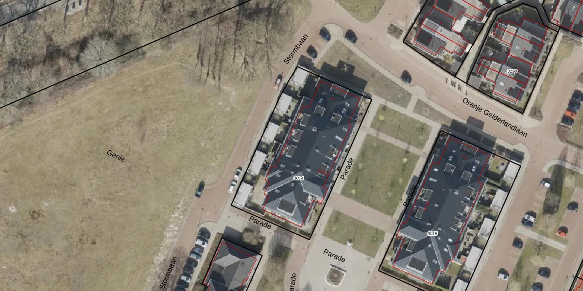 Het perceel waarop Parade 22 staat heeft een oppervlakte van 1535 m². Dit is een zeer groot perceel. De perceeloppervlakte wordt geregistreerd door het Kadaster. Gedetailleerde informatie over de maten van dit perceel kunt u vinden in het rapport Kadastrale kaart met maatvoering van Parade 22.