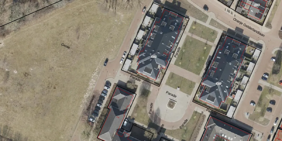 Het perceel waarop Parade 24 staat heeft een oppervlakte van 1535 m². Dit is een zeer groot perceel. De perceeloppervlakte wordt geregistreerd door het Kadaster. Gedetailleerde informatie over de maten van dit perceel kunt u vinden in het rapport Kadastrale kaart met maatvoering van Parade 24.