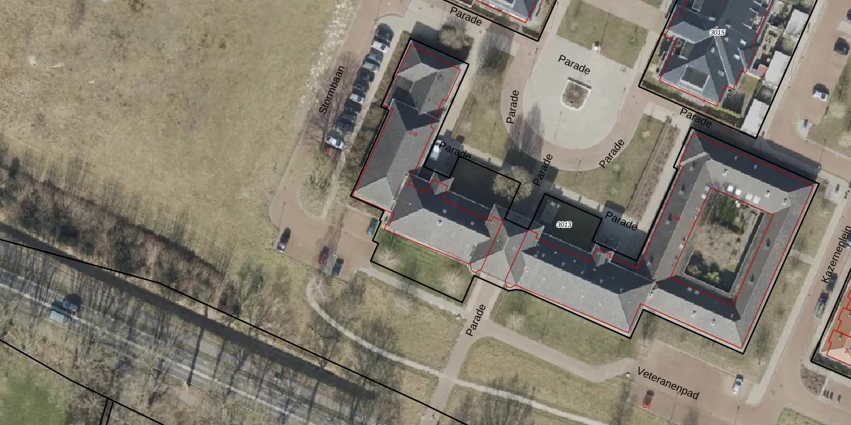 Het perceel waarop Parade 4-A staat heeft een oppervlakte van 3320 m². Dit is een zeer groot perceel. De perceeloppervlakte wordt geregistreerd door het Kadaster. Gedetailleerde informatie over de maten van dit perceel kunt u vinden in het rapport Kadastrale kaart met maatvoering van Parade 4-A.