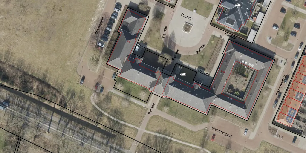 Het perceel waarop Parade 4-C staat heeft een oppervlakte van 3320 m². Dit is een zeer groot perceel. De perceeloppervlakte wordt geregistreerd door het Kadaster. Gedetailleerde informatie over de maten van dit perceel kunt u vinden in het rapport Kadastrale kaart met maatvoering van Parade 4-C.