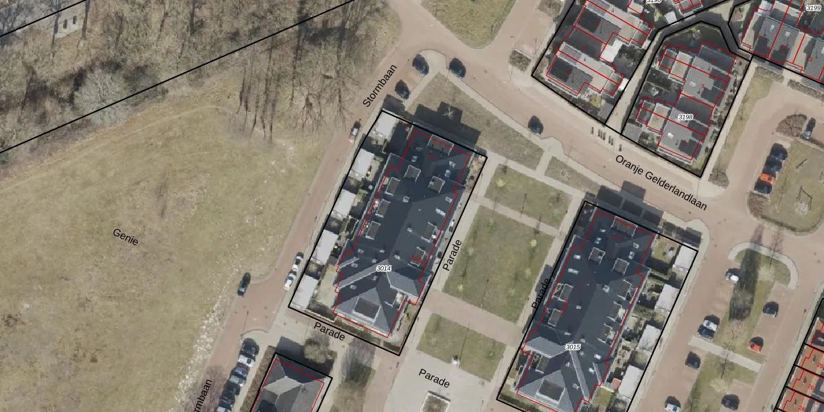 Het perceel waarop Parade 44 staat heeft een oppervlakte van 1535 m². Dit is een zeer groot perceel. De perceeloppervlakte wordt geregistreerd door het Kadaster. Gedetailleerde informatie over de maten van dit perceel kunt u vinden in het rapport Kadastrale kaart met maatvoering van Parade 44.