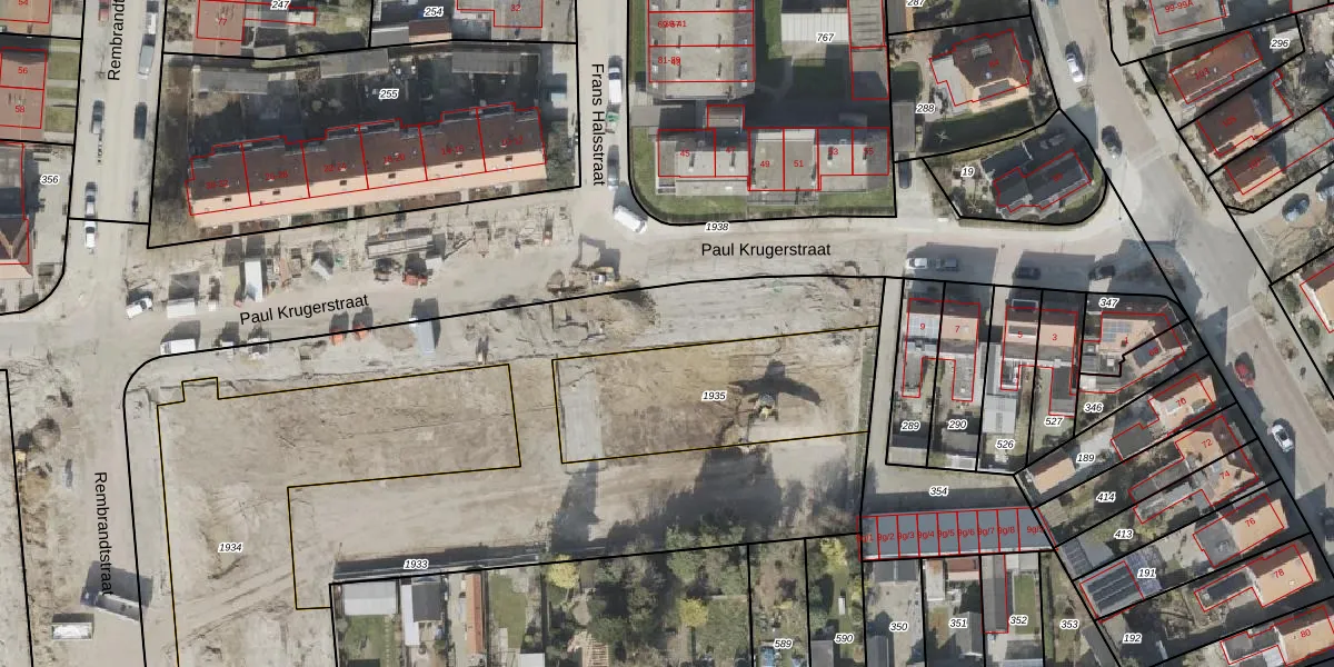 Het perceel waarop Paul Krugerstraat 21 staat heeft een oppervlakte van 2836 m². Dit is een zeer groot perceel. De perceeloppervlakte wordt geregistreerd door het Kadaster. Gedetailleerde informatie over de maten van dit perceel kunt u vinden in het rapport Kadastrale kaart met maatvoering van Paul Krugerstraat 21.