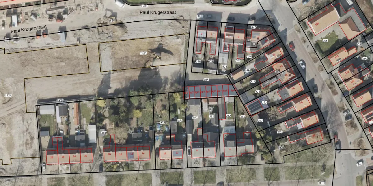 Het perceel waarop Paul Krugerstraat 9-g-1 staat heeft een oppervlakte van 415 m². Dit is een groot perceel. De perceeloppervlakte wordt geregistreerd door het Kadaster. Gedetailleerde informatie over de maten van dit perceel kunt u vinden in het rapport Kadastrale kaart met maatvoering van Paul Krugerstraat 9-g-1.
