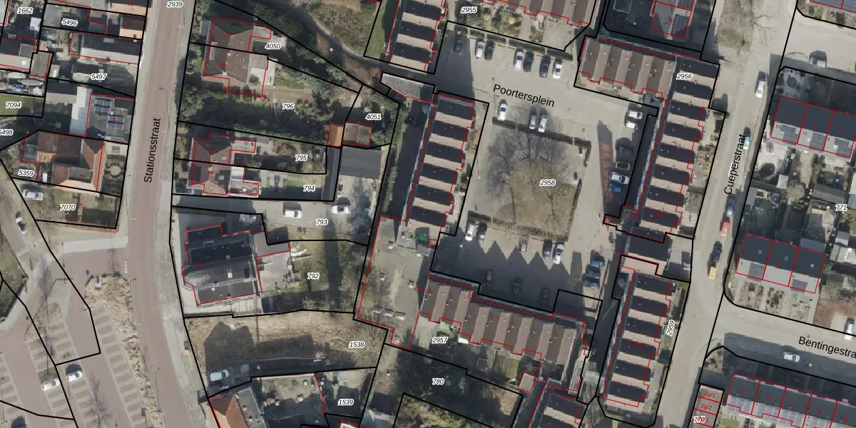 Poortersplein 54 is gelegen op kadastraal perceel SWK01B2957. Deze kadastrale aanduiding is uniek en wordt gebruikt door het Kadaster om eigendomsrechten en andere zakelijke rechten vast te leggen. Het perceel maakt onderdeel uit van de kadastrale gemeente Steenwijk.