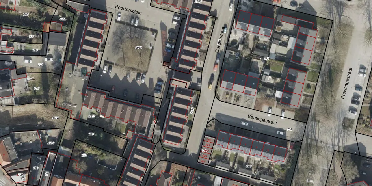 Het perceel waarop Poortersplein 62 staat heeft een oppervlakte van 554 m². Dit is een groot perceel. De perceeloppervlakte wordt geregistreerd door het Kadaster. Gedetailleerde informatie over de maten van dit perceel kunt u vinden in het rapport Kadastrale kaart met maatvoering van Poortersplein 62.