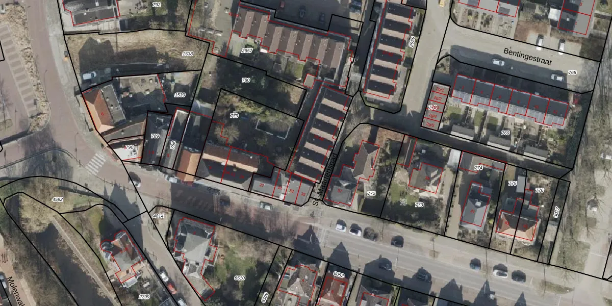 Het perceel waarop Poortersplein 74 staat heeft een oppervlakte van 2452 m². Dit is een zeer groot perceel. De perceeloppervlakte wordt geregistreerd door het Kadaster. Gedetailleerde informatie over de maten van dit perceel kunt u vinden in het rapport Kadastrale kaart met maatvoering van Poortersplein 74.
