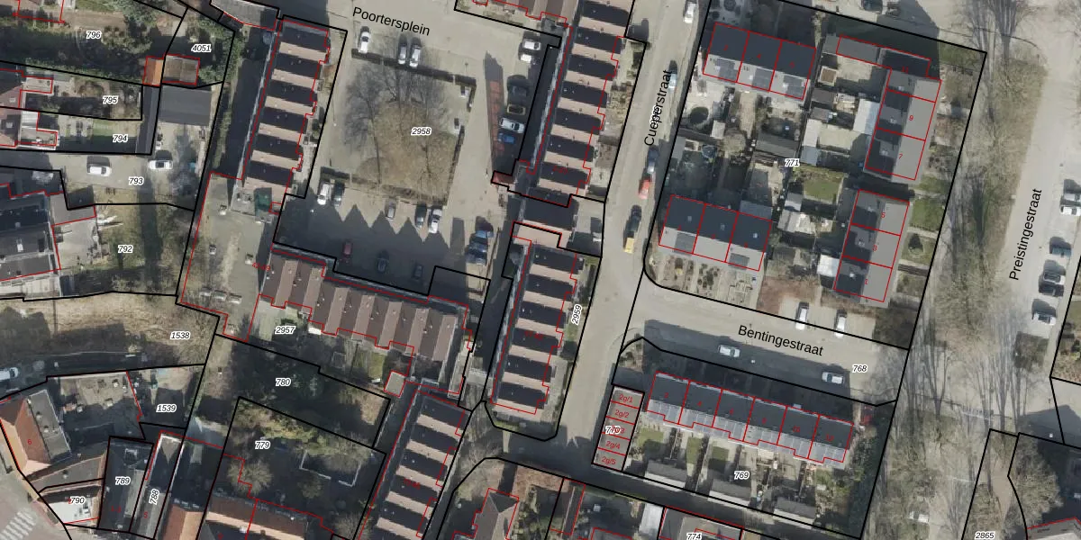 Het perceel waarop Poortersplein 81 staat heeft een oppervlakte van 554 m². Dit is een groot perceel. De perceeloppervlakte wordt geregistreerd door het Kadaster. Gedetailleerde informatie over de maten van dit perceel kunt u vinden in het rapport Kadastrale kaart met maatvoering van Poortersplein 81.