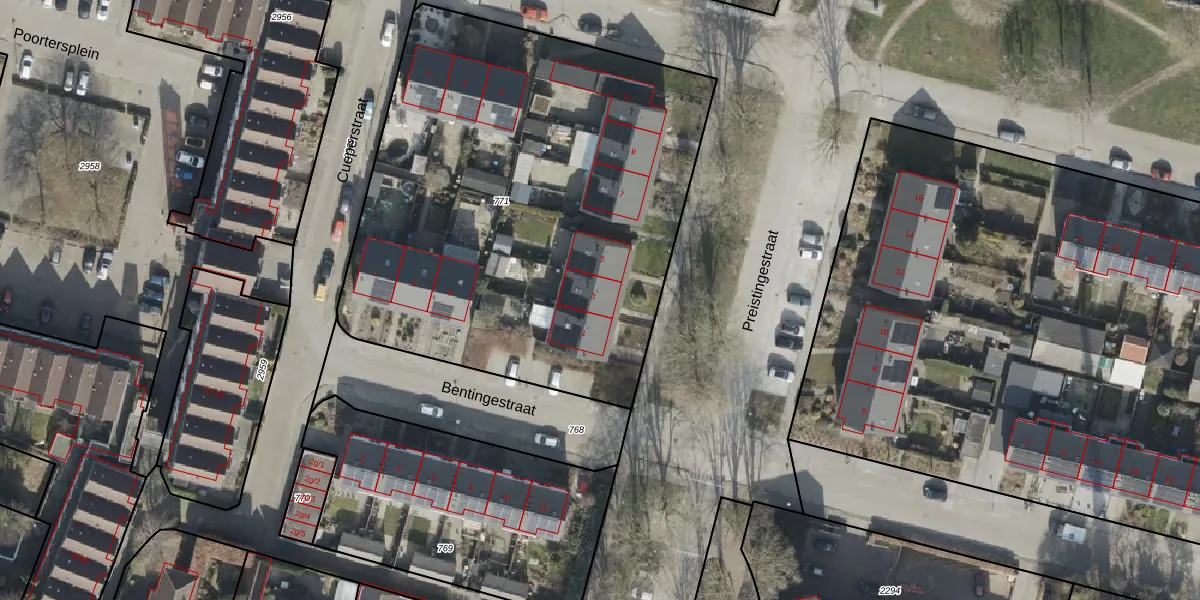 Het perceel waarop Preistingestraat 3 staat heeft een oppervlakte van 2956 m². Dit is een zeer groot perceel. De perceeloppervlakte wordt geregistreerd door het Kadaster. Gedetailleerde informatie over de maten van dit perceel kunt u vinden in het rapport Kadastrale kaart met maatvoering van Preistingestraat 3.