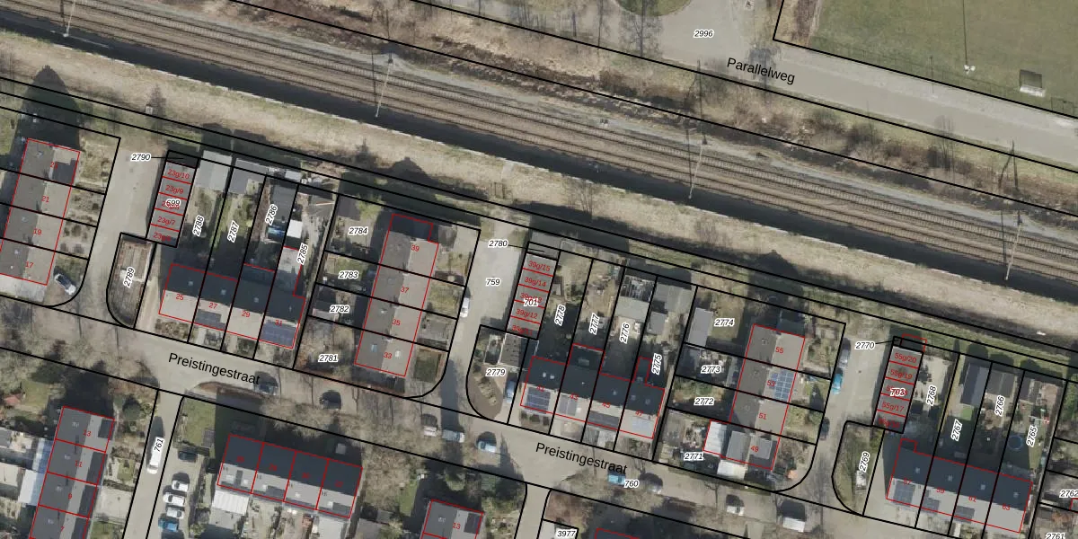 Het perceel waarop Preistingestraat 39-g-15 staat heeft een oppervlakte van 88 m². Dit is een klein perceel. De perceeloppervlakte wordt geregistreerd door het Kadaster. Gedetailleerde informatie over de maten van dit perceel kunt u vinden in het rapport Kadastrale kaart met maatvoering van Preistingestraat 39-g-15.