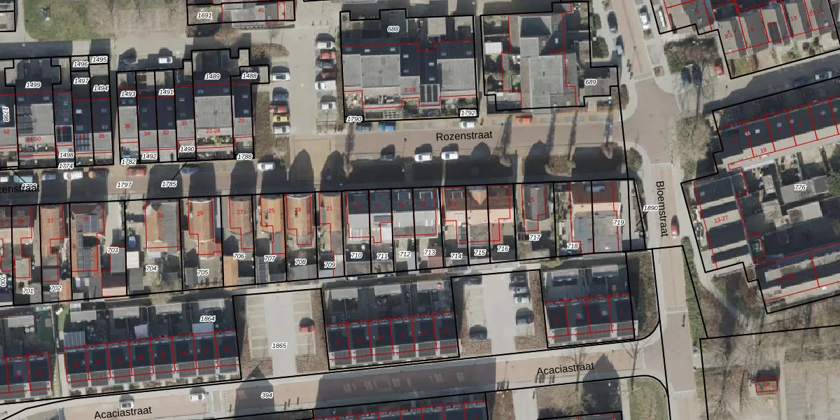Het perceel waarop Rozenstraat 13 staat heeft een oppervlakte van 121 m². Dit is een middelgroot perceel. De perceeloppervlakte wordt geregistreerd door het Kadaster. Gedetailleerde informatie over de maten van dit perceel kunt u vinden in het rapport Kadastrale kaart met maatvoering van Rozenstraat 13.