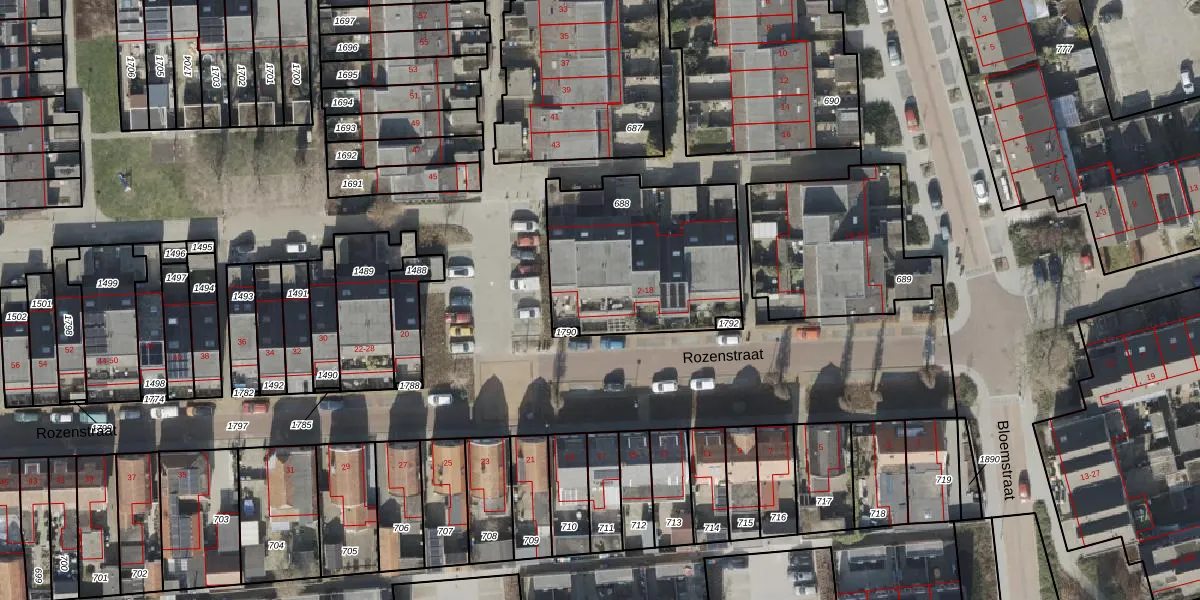 Het perceel waarop Rozenstraat 14 staat heeft een oppervlakte van 773 m². Dit is een groot perceel. De perceeloppervlakte wordt geregistreerd door het Kadaster. Gedetailleerde informatie over de maten van dit perceel kunt u vinden in het rapport Kadastrale kaart met maatvoering van Rozenstraat 14.