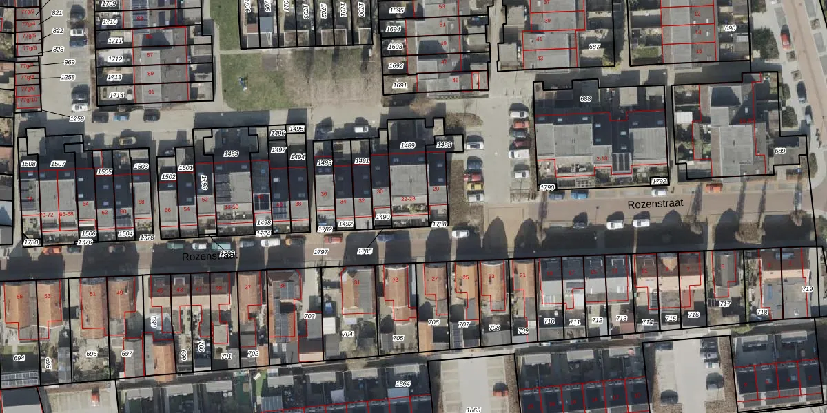 Het perceel waarop Rozenstraat 24 staat heeft een oppervlakte van 257 m². Dit is een middelgroot perceel. De perceeloppervlakte wordt geregistreerd door het Kadaster. Gedetailleerde informatie over de maten van dit perceel kunt u vinden in het rapport Kadastrale kaart met maatvoering van Rozenstraat 24.