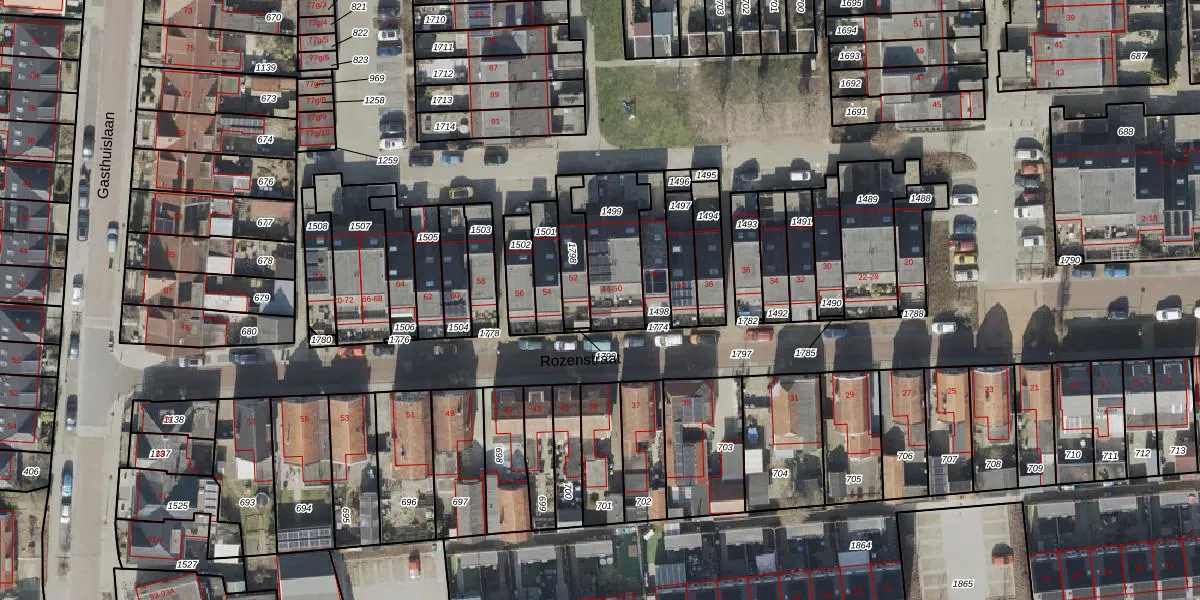 Het perceel waarop Rozenstraat 50 staat heeft een oppervlakte van 256 m². Dit is een middelgroot perceel. De perceeloppervlakte wordt geregistreerd door het Kadaster. Gedetailleerde informatie over de maten van dit perceel kunt u vinden in het rapport Kadastrale kaart met maatvoering van Rozenstraat 50.