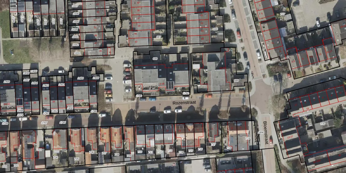 Het perceel waarop Rozenstraat 6 staat heeft een oppervlakte van 773 m². Dit is een groot perceel. De perceeloppervlakte wordt geregistreerd door het Kadaster. Gedetailleerde informatie over de maten van dit perceel kunt u vinden in het rapport Kadastrale kaart met maatvoering van Rozenstraat 6.