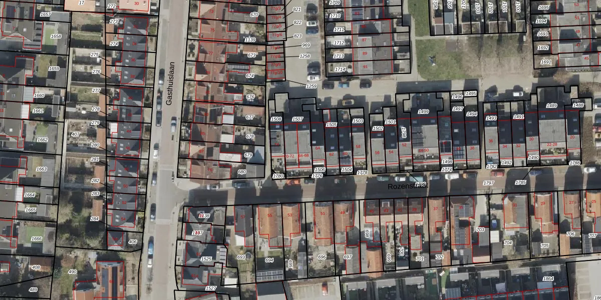 Het perceel waarop Rozenstraat 66 staat heeft een oppervlakte van 257 m². Dit is een middelgroot perceel. De perceeloppervlakte wordt geregistreerd door het Kadaster. Gedetailleerde informatie over de maten van dit perceel kunt u vinden in het rapport Kadastrale kaart met maatvoering van Rozenstraat 66.