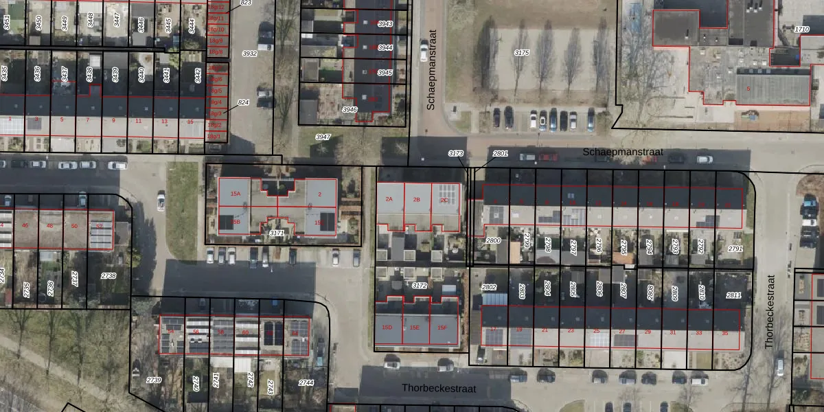 Het perceel waarop Schaepmanstraat 2-B staat heeft een oppervlakte van 1016 m². Dit is een zeer groot perceel. De perceeloppervlakte wordt geregistreerd door het Kadaster. Gedetailleerde informatie over de maten van dit perceel kunt u vinden in het rapport Kadastrale kaart met maatvoering van Schaepmanstraat 2-B.