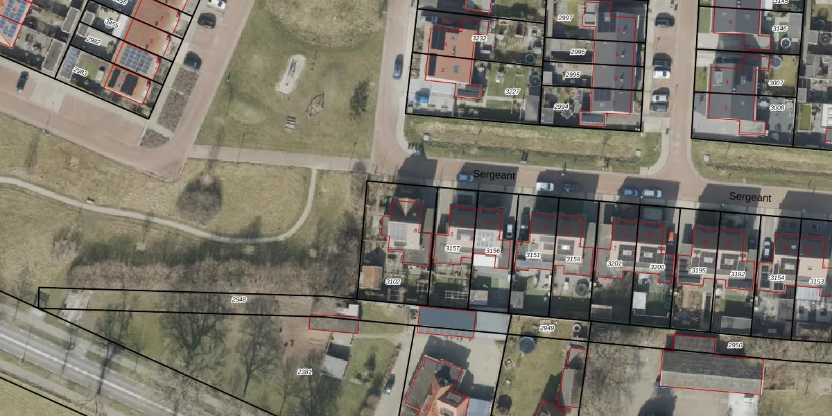 Het perceel waarop Sergeant 2 staat heeft een oppervlakte van 480 m². Dit is een groot perceel. De perceeloppervlakte wordt geregistreerd door het Kadaster. Gedetailleerde informatie over de maten van dit perceel kunt u vinden in het rapport Kadastrale kaart met maatvoering van Sergeant 2.