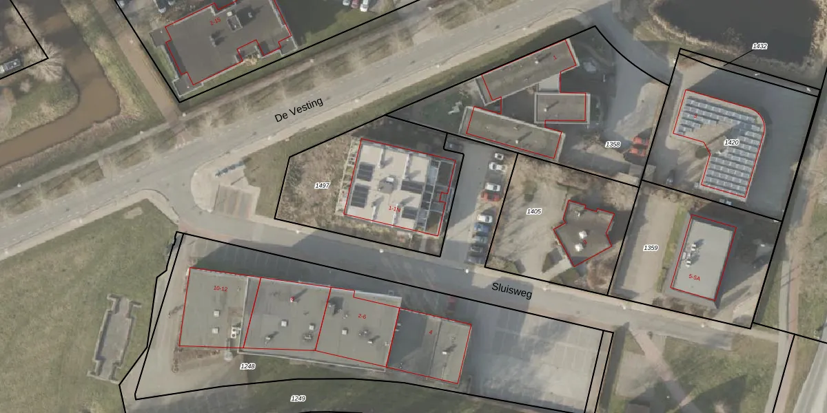 Sluisweg 1-A is gelegen op kadastraal perceel SWK01A1497. Deze kadastrale aanduiding is uniek en wordt gebruikt door het Kadaster om eigendomsrechten en andere zakelijke rechten vast te leggen. Het perceel maakt onderdeel uit van de kadastrale gemeente Steenwijk.
