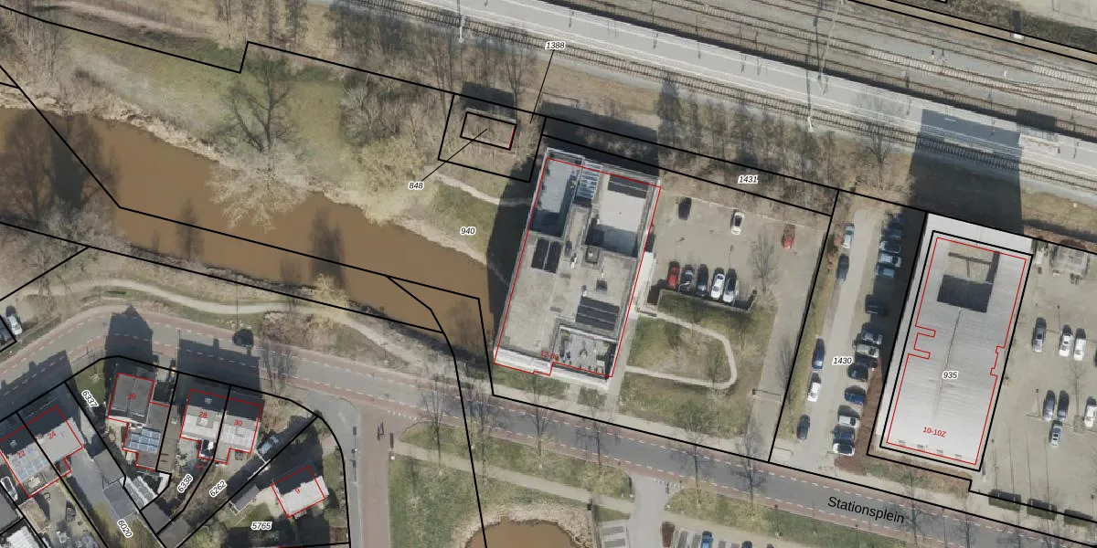 Het perceel waarop Stationsplein 28 staat heeft een oppervlakte van 5440 m². Dit is een zeer groot perceel. De perceeloppervlakte wordt geregistreerd door het Kadaster. Gedetailleerde informatie over de maten van dit perceel kunt u vinden in het rapport Kadastrale kaart met maatvoering van Stationsplein 28.