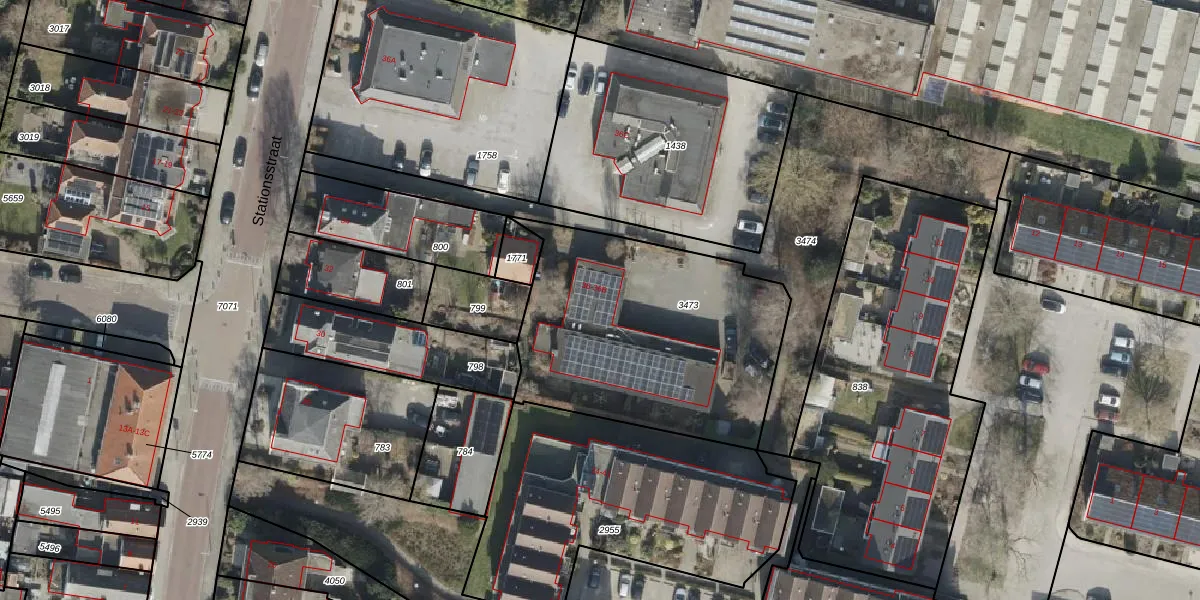 Het perceel waarop Stationsstraat 36 staat heeft een oppervlakte van 1258 m². Dit is een zeer groot perceel. De perceeloppervlakte wordt geregistreerd door het Kadaster. Gedetailleerde informatie over de maten van dit perceel kunt u vinden in het rapport Kadastrale kaart met maatvoering van Stationsstraat 36.