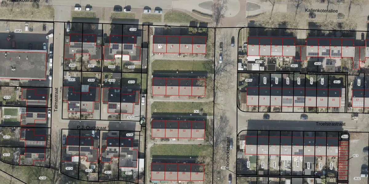 Het perceel waarop Thorbeckestraat 4 staat heeft een oppervlakte van 4215 m². Dit is een zeer groot perceel. De perceeloppervlakte wordt geregistreerd door het Kadaster. Gedetailleerde informatie over de maten van dit perceel kunt u vinden in het rapport Kadastrale kaart met maatvoering van Thorbeckestraat 4.