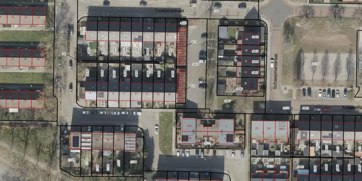 Het perceel waarop Troelstrastraat 18-g-3 staat heeft een oppervlakte van 106 m². Dit is een middelgroot perceel. De perceeloppervlakte wordt geregistreerd door het Kadaster. Gedetailleerde informatie over de maten van dit perceel kunt u vinden in het rapport Kadastrale kaart met maatvoering van Troelstrastraat 18-g-3.