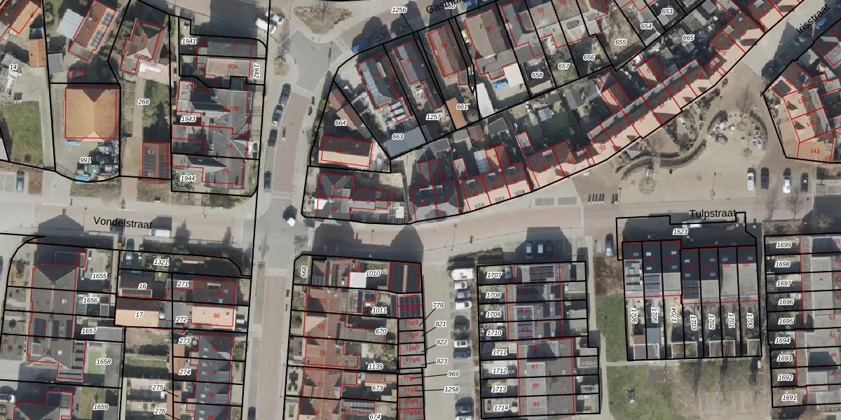 Het perceel waarop Tulpstraat 46 staat heeft een oppervlakte van 3060 m². Dit is een zeer groot perceel. De perceeloppervlakte wordt geregistreerd door het Kadaster. Gedetailleerde informatie over de maten van dit perceel kunt u vinden in het rapport Kadastrale kaart met maatvoering van Tulpstraat 46.