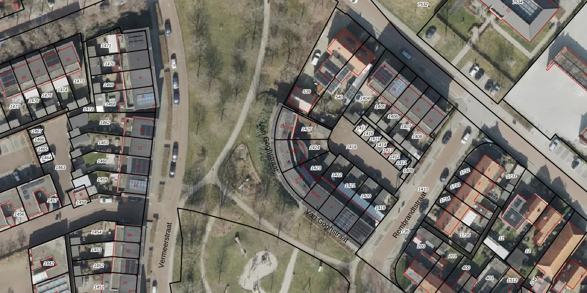 Het perceel waarop Van Goghstraat 12-A staat heeft een oppervlakte van 140 m². Dit is een middelgroot perceel. De perceeloppervlakte wordt geregistreerd door het Kadaster. Gedetailleerde informatie over de maten van dit perceel kunt u vinden in het rapport Kadastrale kaart met maatvoering van Van Goghstraat 12-A.