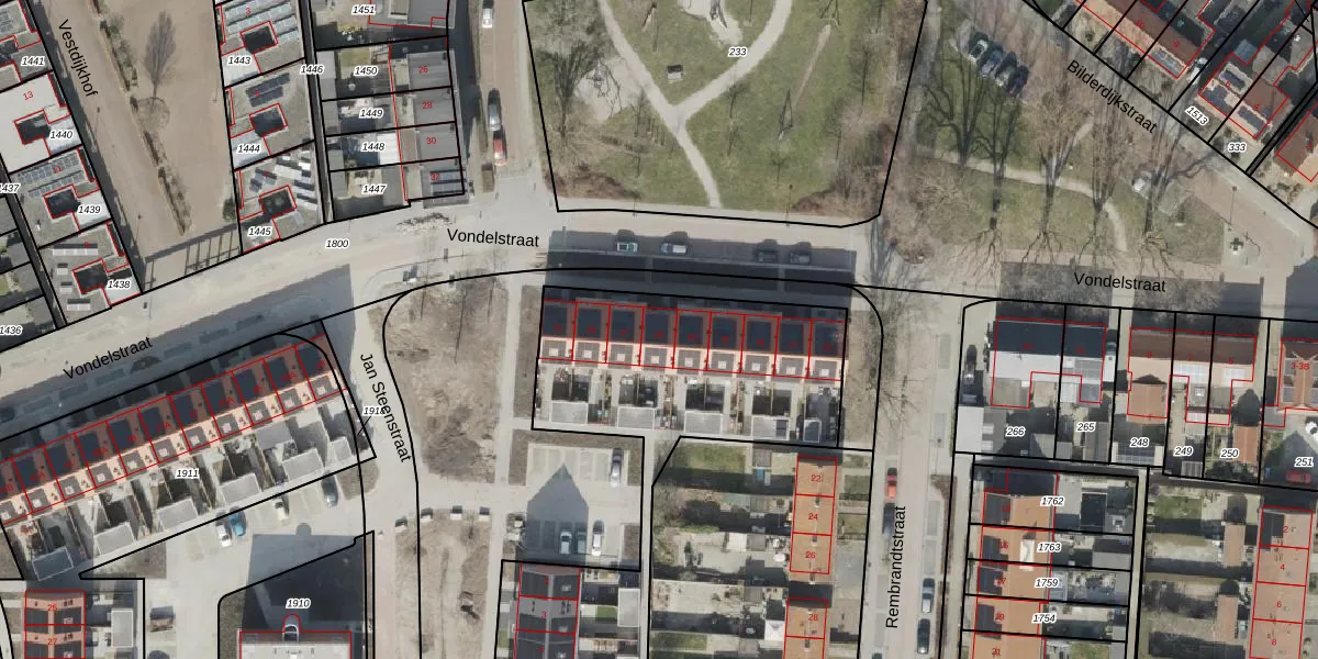 Het perceel waarop Vondelstraat 25 staat heeft een oppervlakte van 3075 m². Dit is een zeer groot perceel. De perceeloppervlakte wordt geregistreerd door het Kadaster. Gedetailleerde informatie over de maten van dit perceel kunt u vinden in het rapport Kadastrale kaart met maatvoering van Vondelstraat 25.