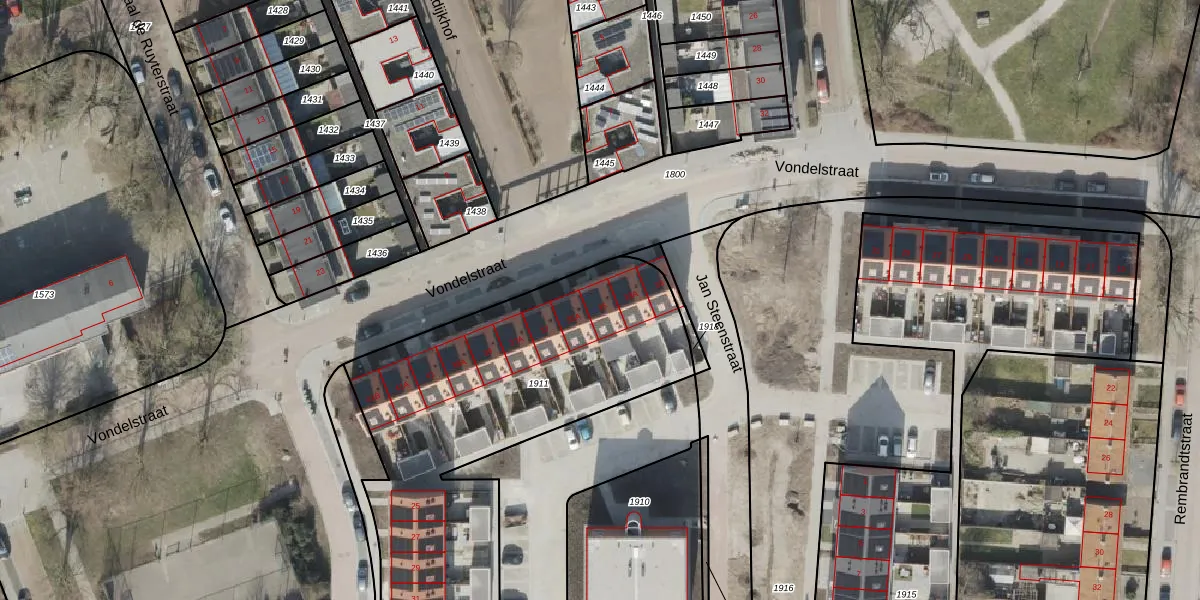 Het perceel waarop Vondelstraat 35 staat heeft een oppervlakte van 1905 m². Dit is een zeer groot perceel. De perceeloppervlakte wordt geregistreerd door het Kadaster. Gedetailleerde informatie over de maten van dit perceel kunt u vinden in het rapport Kadastrale kaart met maatvoering van Vondelstraat 35.