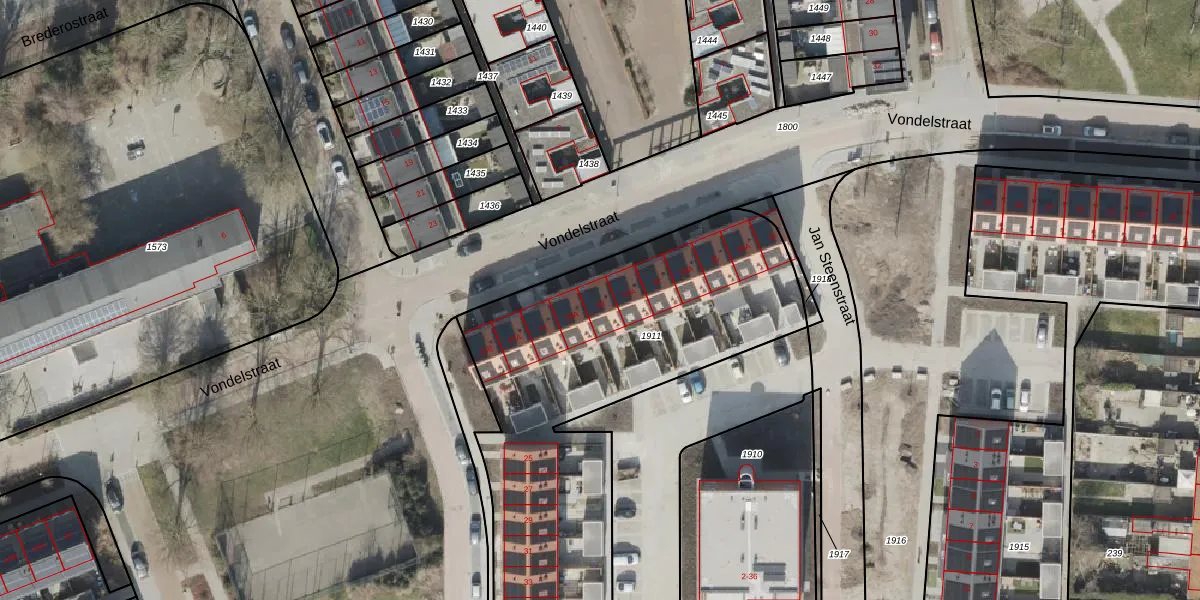 Het perceel waarop Vondelstraat 39 staat heeft een oppervlakte van 1905 m². Dit is een zeer groot perceel. De perceeloppervlakte wordt geregistreerd door het Kadaster. Gedetailleerde informatie over de maten van dit perceel kunt u vinden in het rapport Kadastrale kaart met maatvoering van Vondelstraat 39.