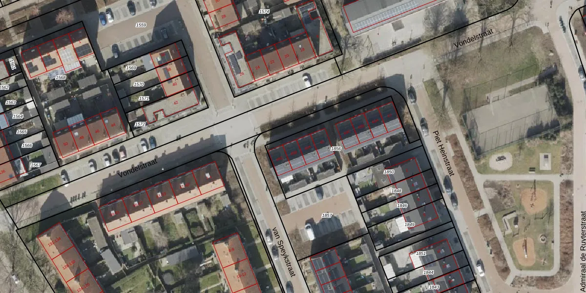 Het perceel waarop Vondelstraat 45-B staat heeft een oppervlakte van 915 m². Dit is een groot perceel. De perceeloppervlakte wordt geregistreerd door het Kadaster. Gedetailleerde informatie over de maten van dit perceel kunt u vinden in het rapport Kadastrale kaart met maatvoering van Vondelstraat 45-B.