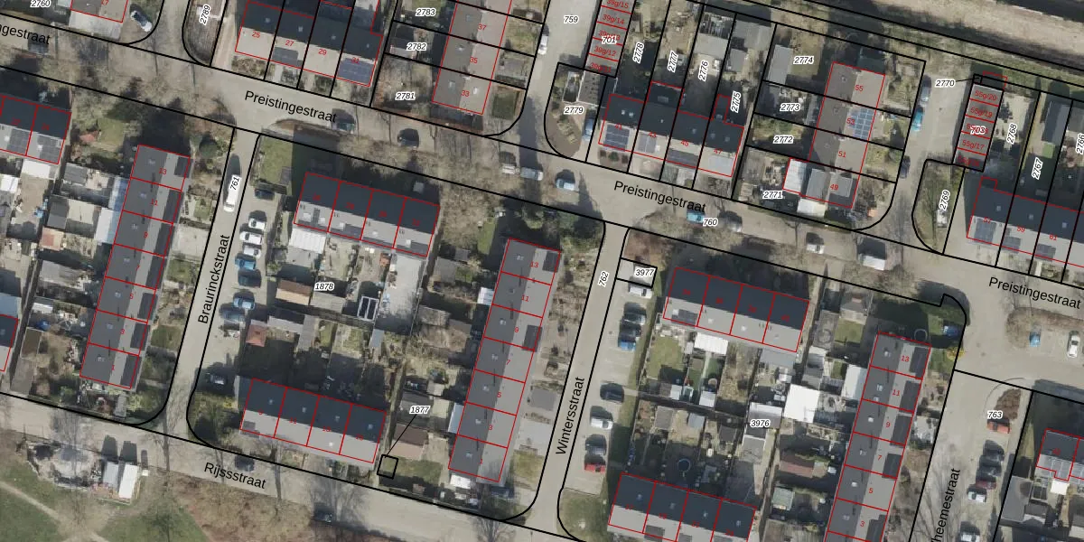 Het perceel waarop Wintersstraat 13 staat heeft een oppervlakte van 3801 m². Dit is een zeer groot perceel. De perceeloppervlakte wordt geregistreerd door het Kadaster. Gedetailleerde informatie over de maten van dit perceel kunt u vinden in het rapport Kadastrale kaart met maatvoering van Wintersstraat 13.