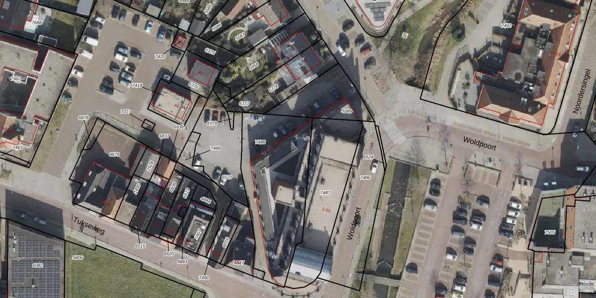 Het perceel waarop Woldpoort 49 staat heeft een oppervlakte van 1056 m². Dit is een zeer groot perceel. De perceeloppervlakte wordt geregistreerd door het Kadaster. Gedetailleerde informatie over de maten van dit perceel kunt u vinden in het rapport Kadastrale kaart met maatvoering van Woldpoort 49.