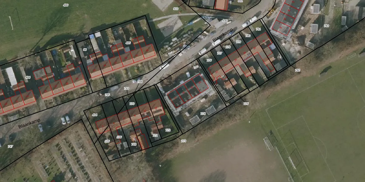Het perceel waarop Blaankamp 16 staat heeft een oppervlakte van 840 m². Dit is een groot perceel. De perceeloppervlakte wordt geregistreerd door het Kadaster. Gedetailleerde informatie over de maten van dit perceel kunt u vinden in het rapport Kadastrale kaart met maatvoering van Blaankamp 16.