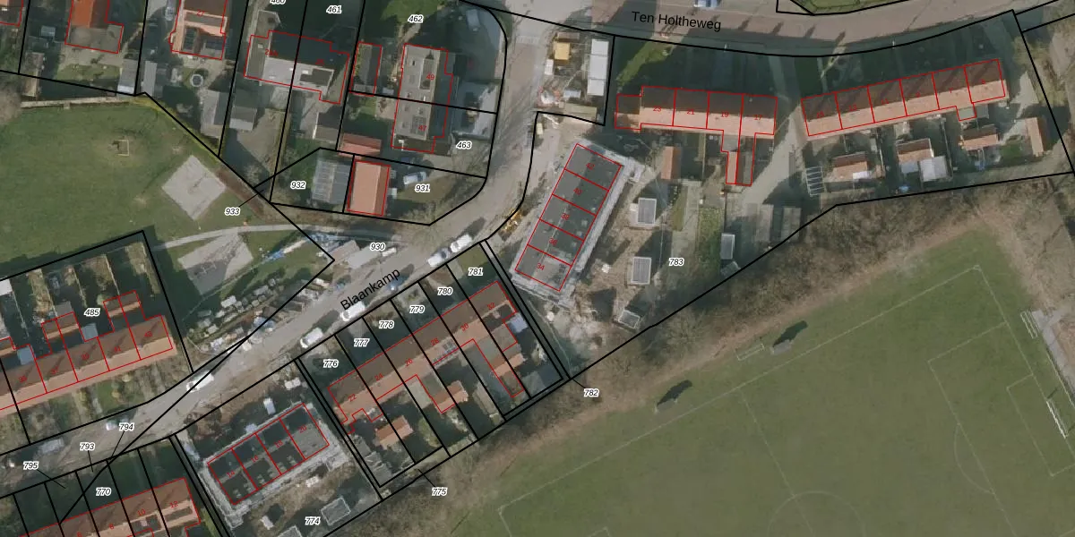 Het perceel waarop Blaankamp 34 staat heeft een oppervlakte van 3700 m². Dit is een zeer groot perceel. De perceeloppervlakte wordt geregistreerd door het Kadaster. Gedetailleerde informatie over de maten van dit perceel kunt u vinden in het rapport Kadastrale kaart met maatvoering van Blaankamp 34.
