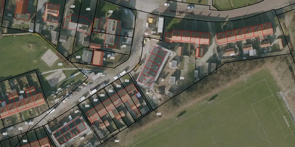 Het perceel waarop Blaankamp 36 staat heeft een oppervlakte van 3700 m². Dit is een zeer groot perceel. De perceeloppervlakte wordt geregistreerd door het Kadaster. Gedetailleerde informatie over de maten van dit perceel kunt u vinden in het rapport Kadastrale kaart met maatvoering van Blaankamp 36.