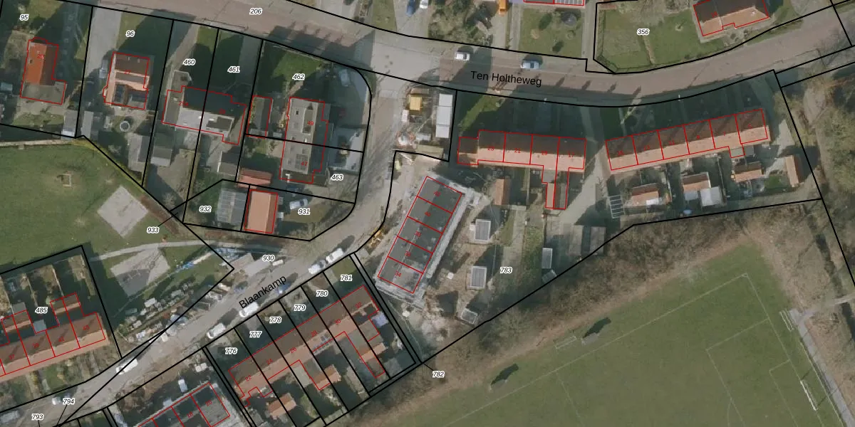 Het perceel waarop Blaankamp 40 staat heeft een oppervlakte van 3700 m². Dit is een zeer groot perceel. De perceeloppervlakte wordt geregistreerd door het Kadaster. Gedetailleerde informatie over de maten van dit perceel kunt u vinden in het rapport Kadastrale kaart met maatvoering van Blaankamp 40.