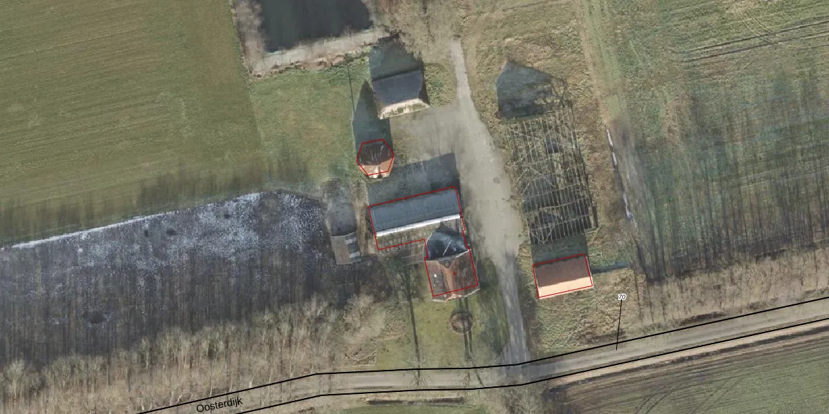 Het perceel waarop Oosterdijk 4 staat heeft een oppervlakte van 15,4 ha. Dit is een zeer groot perceel. De perceeloppervlakte wordt geregistreerd door het Kadaster. Gedetailleerde informatie over de maten van dit perceel kunt u vinden in het rapport Kadastrale kaart met maatvoering van Oosterdijk 4.