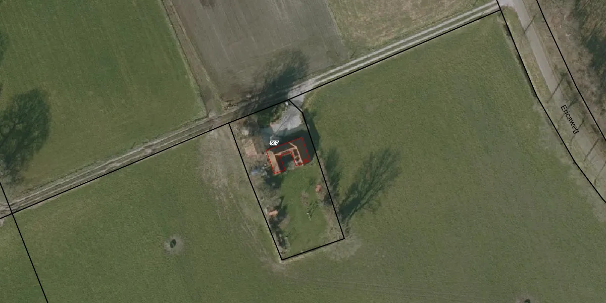 Ericaweg 44 is gelegen op kadastraal perceel BDK00D507. Deze kadastrale aanduiding is uniek en wordt gebruikt door het Kadaster om eigendomsrechten en andere zakelijke rechten vast te leggen. Het perceel maakt onderdeel uit van de kadastrale gemeente Blesdijke.